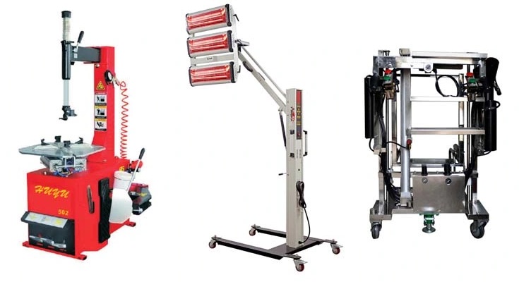 garage equipment including a high diversity of compressors, lifts, tools, machines, and cleaning equipment.